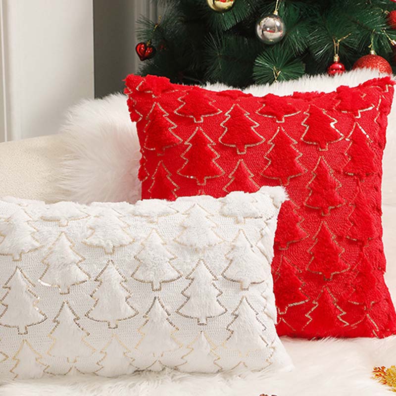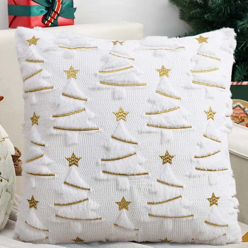 GLÄNZENDES WEIHNACHTSDESIGN – Jeder Bezug zeigt wunderschön gestickte Weihnachtsmotive wie festliche Tannenbäume und charmante Rentiere. Feine Pailletten sind eingearbeitet, die dezent glitzern, das Licht einfangen und das Design zum Leben erwecken.