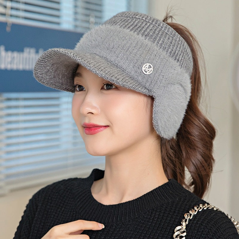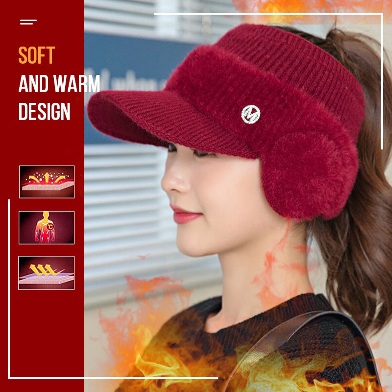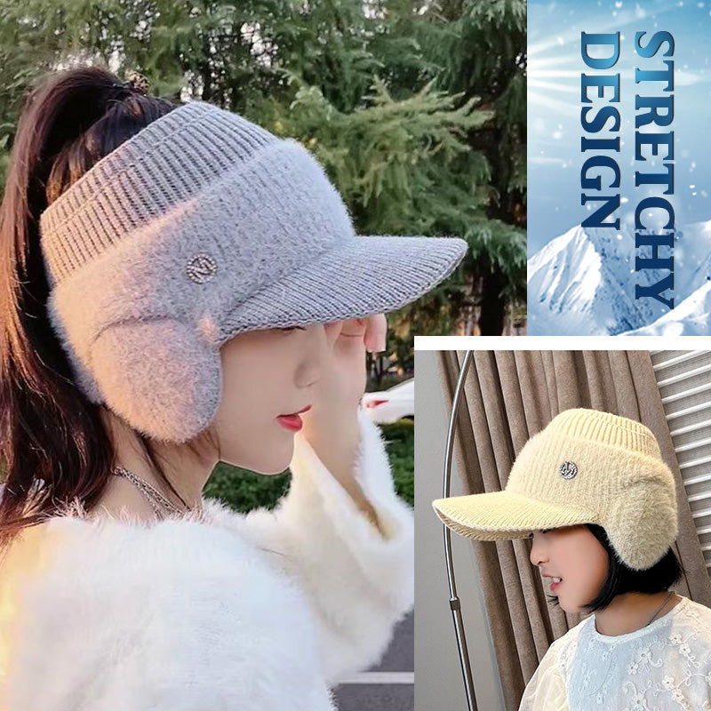 Warme Strickmützen mit Schirm für Damen