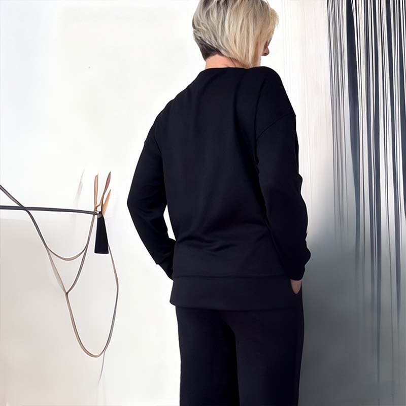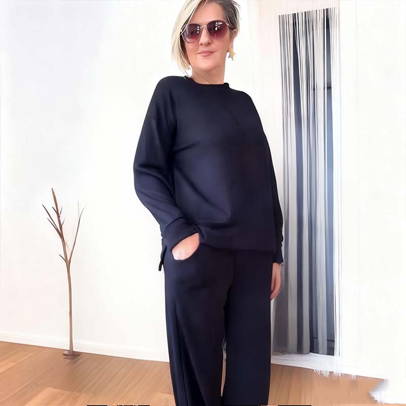 Damen lässiges Set: Langarm-Oberteil und Weitbeinhose
